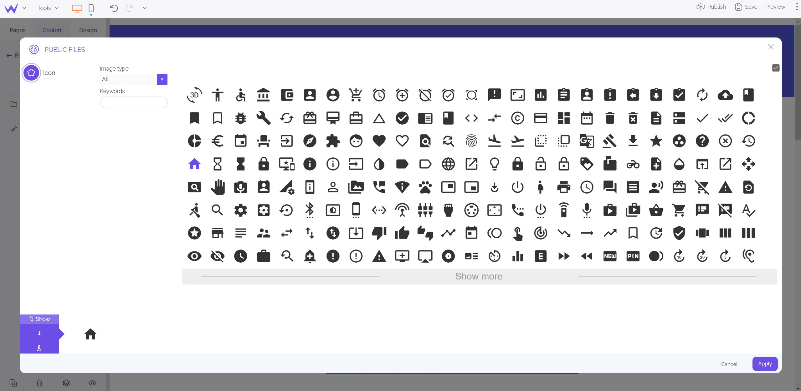 Otherwise, you can also choose a picture or video in the gallery of royalty-free images or on YouTube to add to your website.